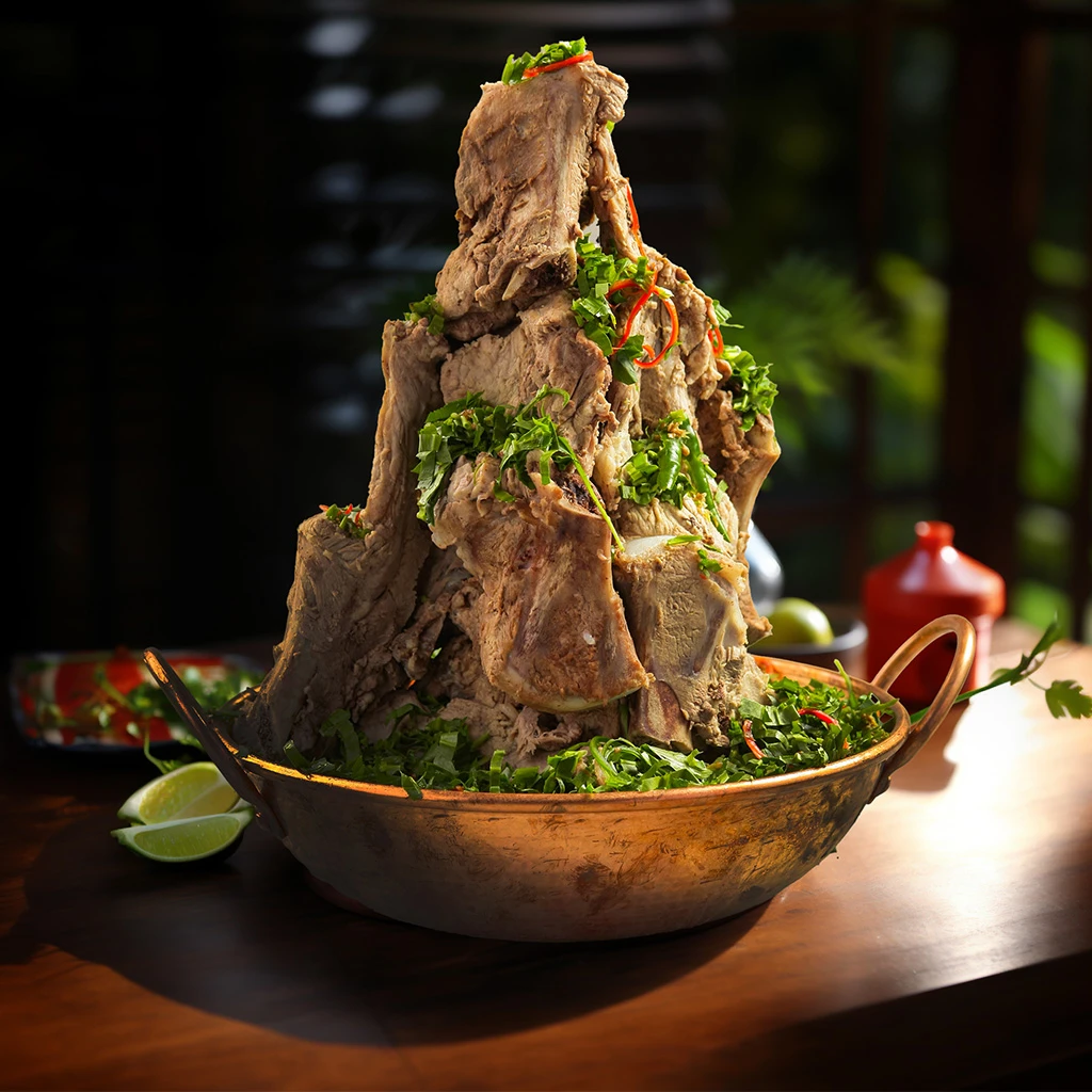 Sườn Tháp Cay – món “vedette” của MANI THAI, với sườn nguyên khúc hầm nhừ, thấm vị cay nồng ớt xanh và gia vị Thái đặc trưng, mang đến hương vị chua cay đậm đà, nóng hổi và đầy cuốn hút.