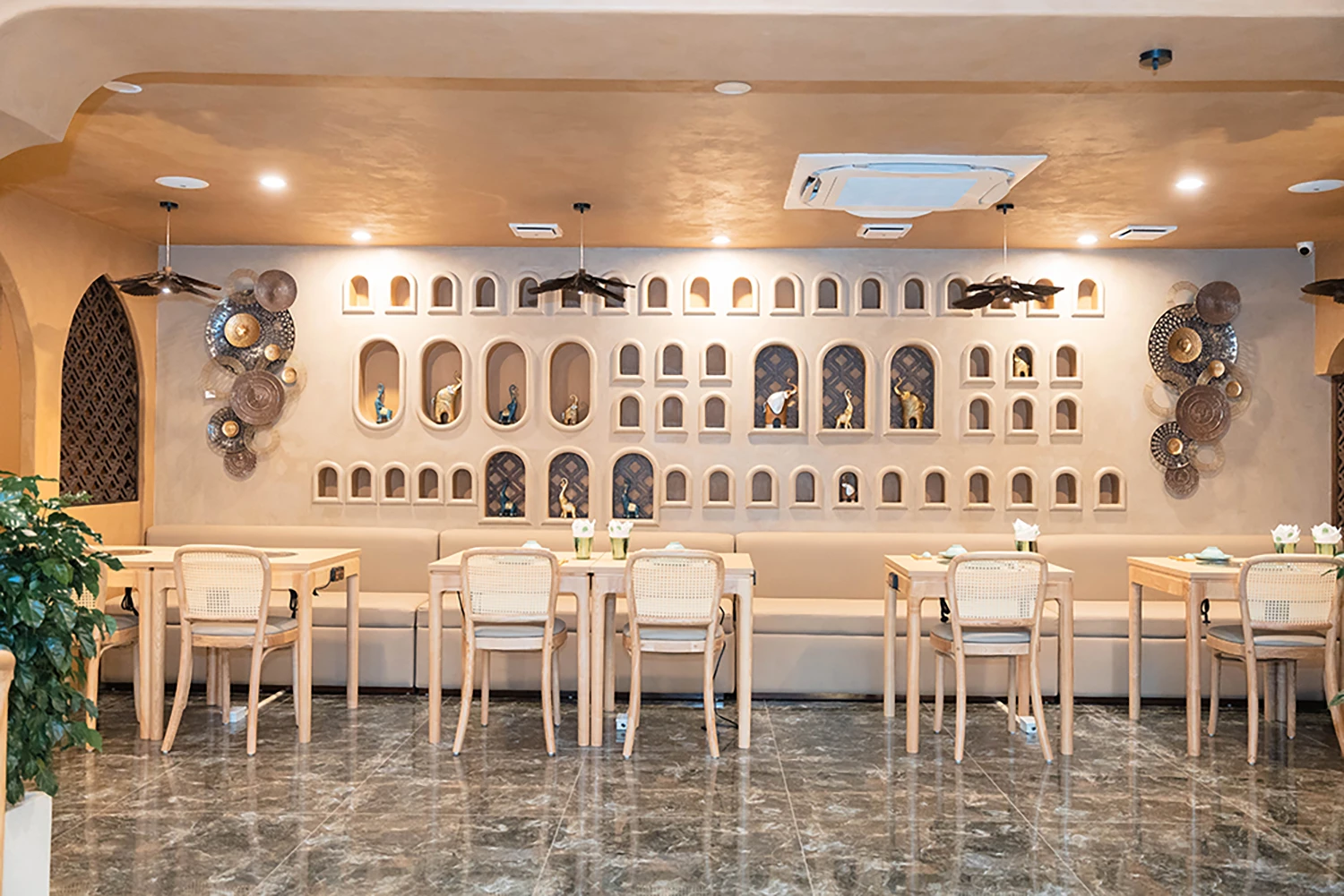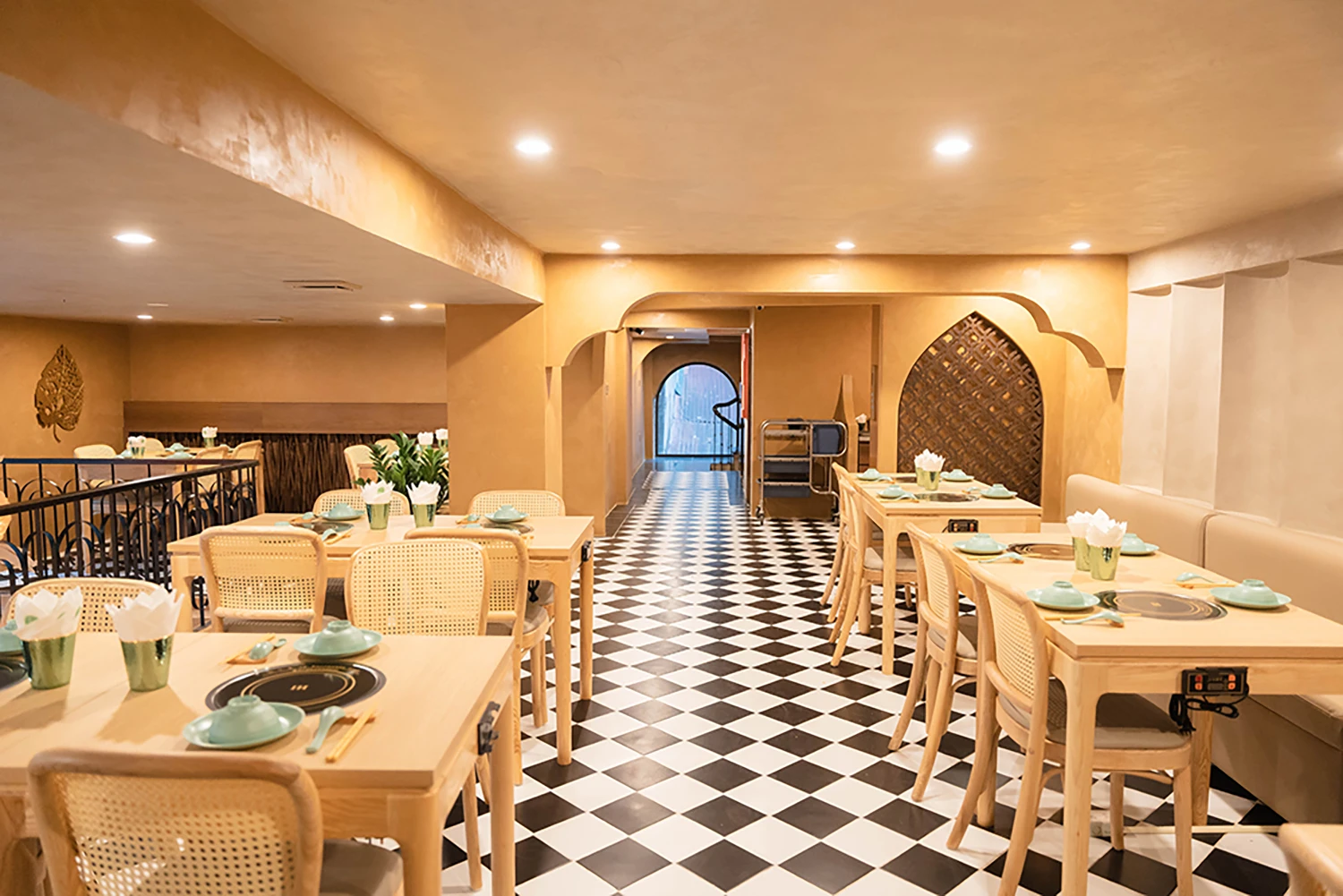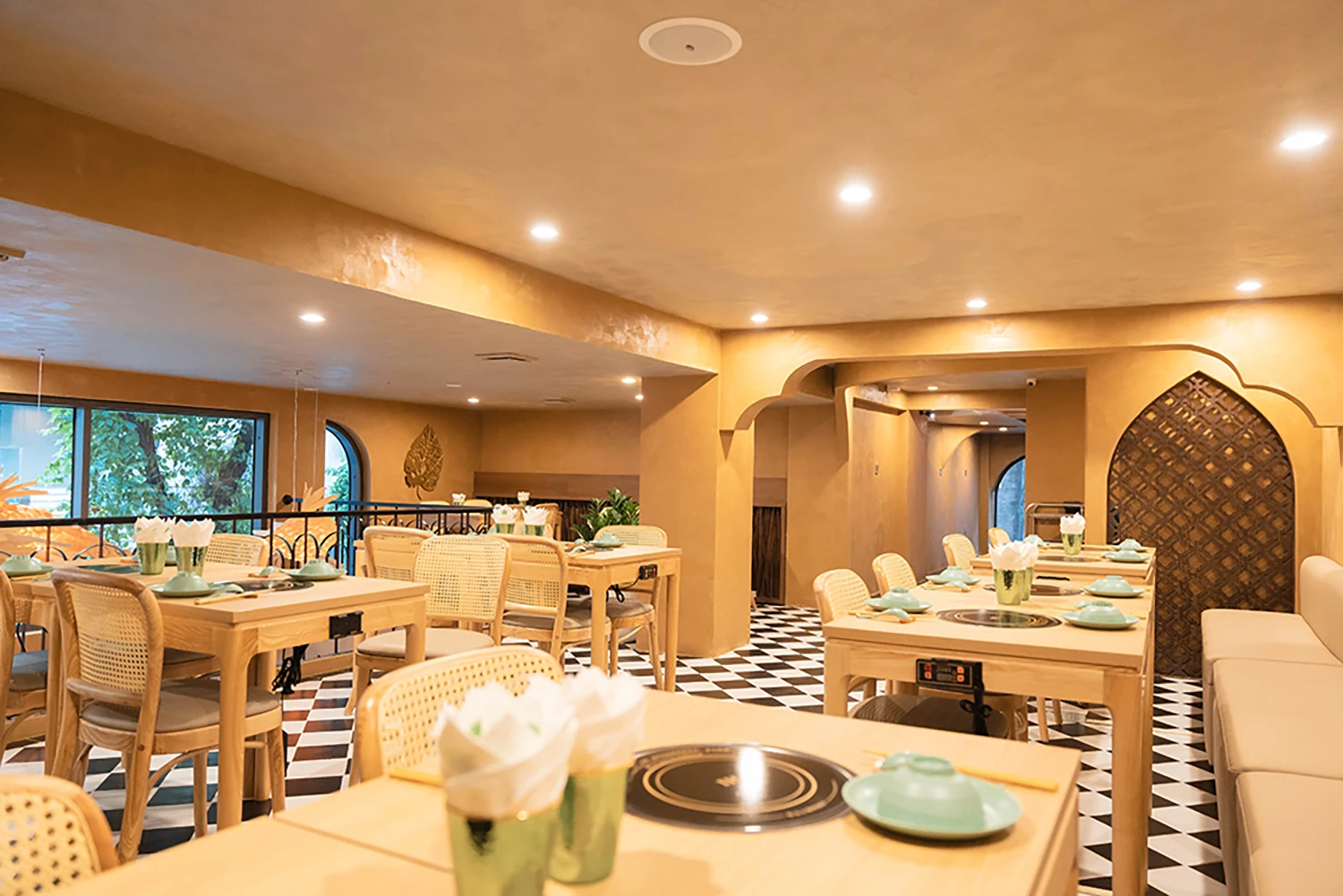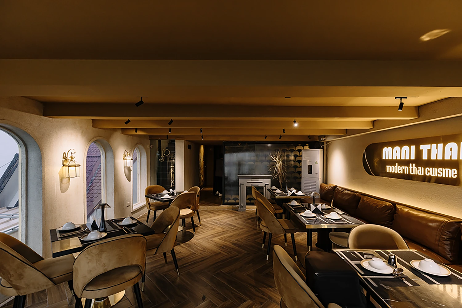Trong không gian hiện đại với phong cách thiết kế đặc trưng từ xứ Chùa Vàng có thể tiếp đón các đoàn tới 50 thực khách, MANI THAI là điểm