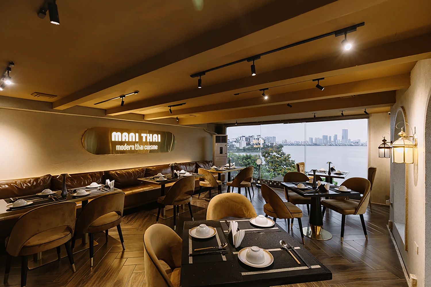 Mani Thai Xuân Diệu – Tây Hồ sở hữu không gian thoáng đãng, hiện đại với vị trí đắc địa ven hồ, lý tưởng cho những buổi hẹn hò lãng mạn, gặp gỡ gia đình hoặc tiệc tùng cùng bạn bè.