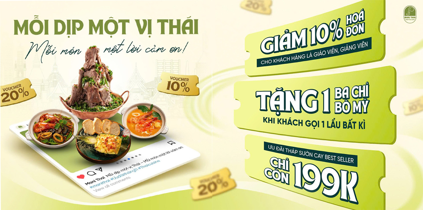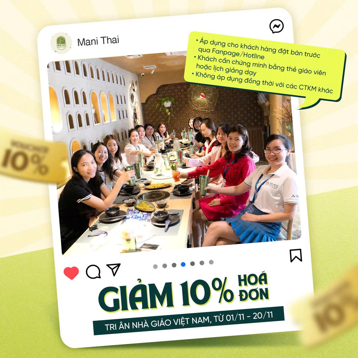 Đặt bàn ngay hôm nay để không bỏ lỡ bữa tiệc ưu đãi tháng 11 và trọn vẹn hương vị Thái chỉ có tại Mani Thai nhé!