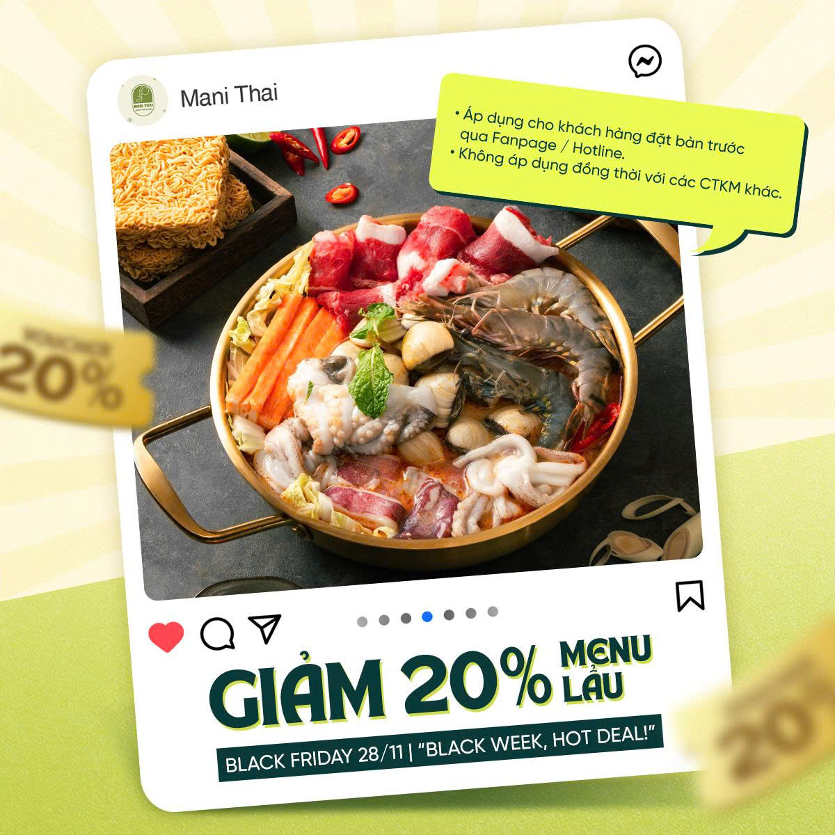 Giảm 20% menu lẩu duy nhất trong 1 ngày 28/11